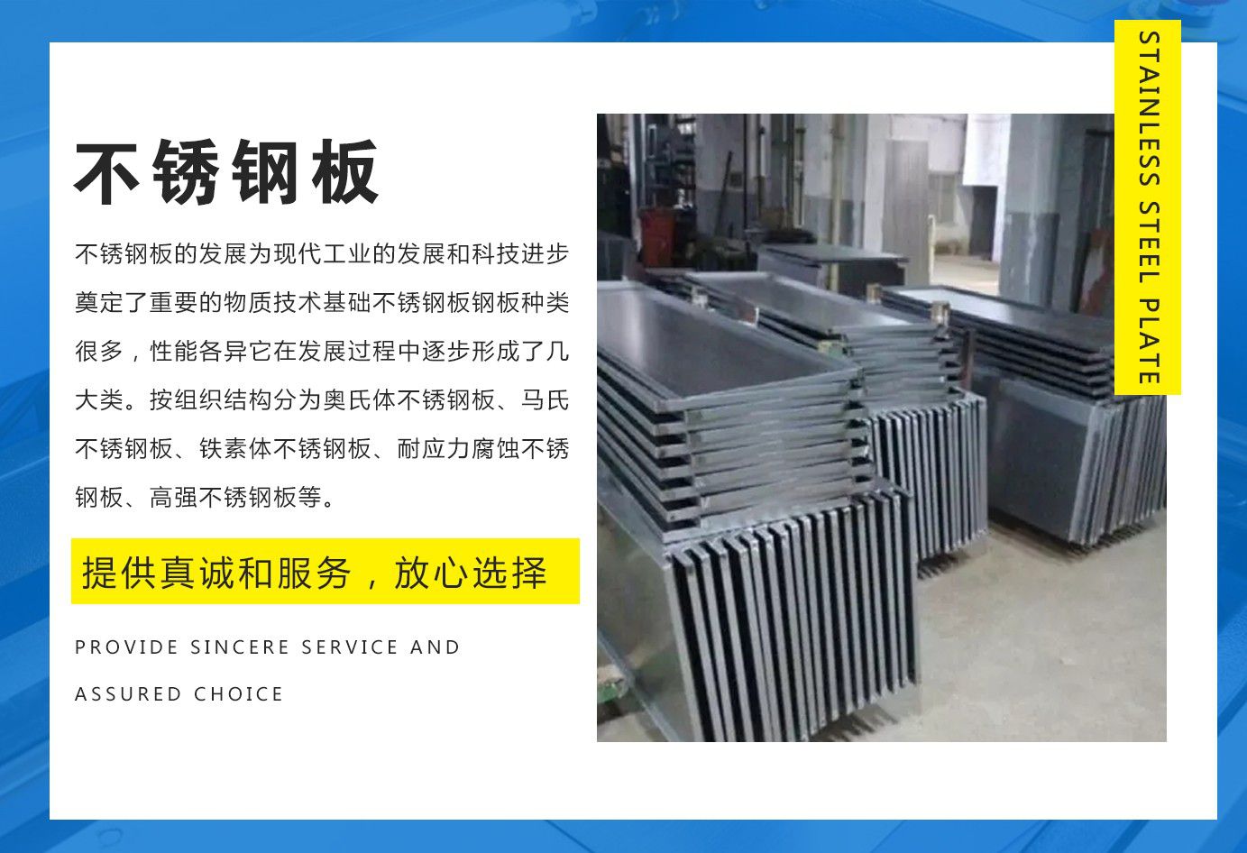 無錫慶發(fā)通金屬制品有限公司以良好的信譽、完善的服務贏得了國內(nèi)石化企業(yè)的一至好評。備有各種材質的優(yōu)質不銹鋼板加工,不銹鋼板激光切割,不銹鋼板激光剪折,不銹鋼板切割加工廠等產(chǎn)品。公司全體員工歡迎新老客戶光臨、垂詢! 自成立以來,一直把304不銹鋼板產(chǎn)品質量作為企業(yè)生存的根本,把服務質量作為我們成功的橋梁我們衷心希望與廣大客戶建立業(yè)務聯(lián)系,提供優(yōu)質服務,同創(chuàng)業(yè),共發(fā)展。我們本著“質量第一,服務第一”的宗旨,為您提供一流的產(chǎn)品,一流的服務。 全體同仁衷心歡迎您到我公司參觀指導洽談業(yè)務。 我公司秉持“以人為本、用戶至上、質量興企”,從優(yōu)惠的價格到優(yōu)質的材料,讓每個客戶滿意,使我們在長期合作中實現(xiàn)共贏!...